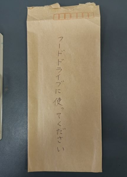 担当職員がフードドライブの収集ボックスを点検したところ、ボックス内から「フードドライブに使って下さい」と匿名の寄付金が入っておりました。