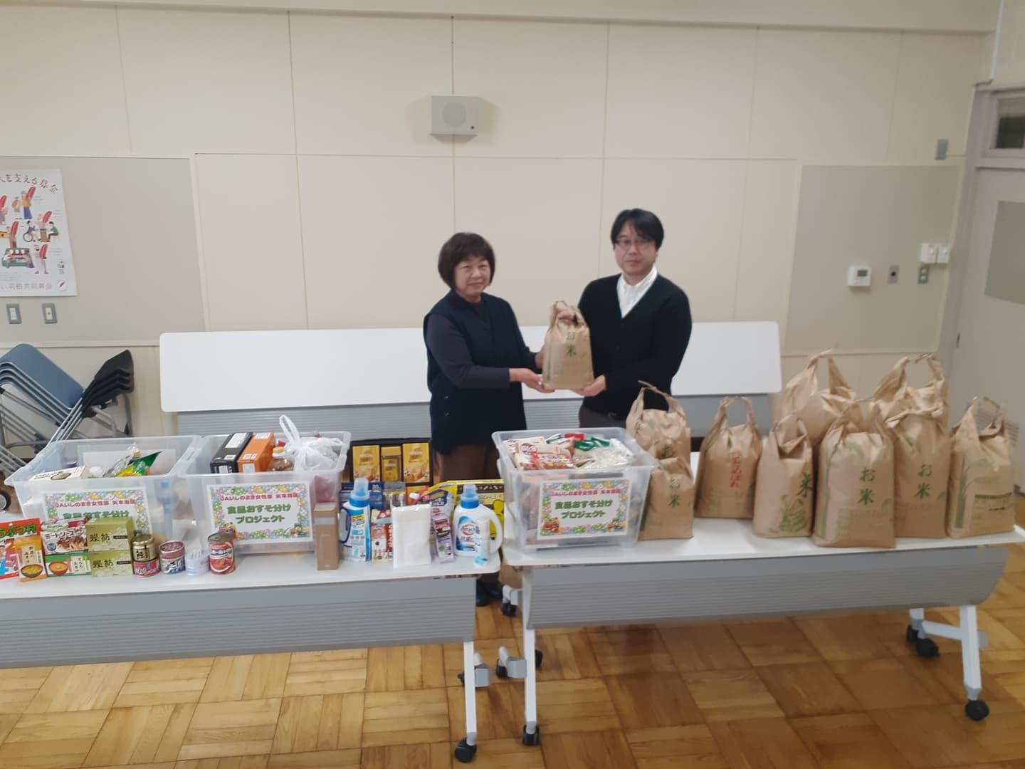 2月12日(木)、JAいしのまき 女性部 矢本地区様より食品や日用品等、総重量153.72㎏の寄付を頂きました。内、相談者様からの需要が高いお米の寄付は105㎏となっており、大変ありがたいです。また、他にはどのようなものが必要なのかというご質問を頂きました。ニーズの高い缶詰やレトルト食品は現在在庫が少なく、食品一つからの寄付でも助かります。
